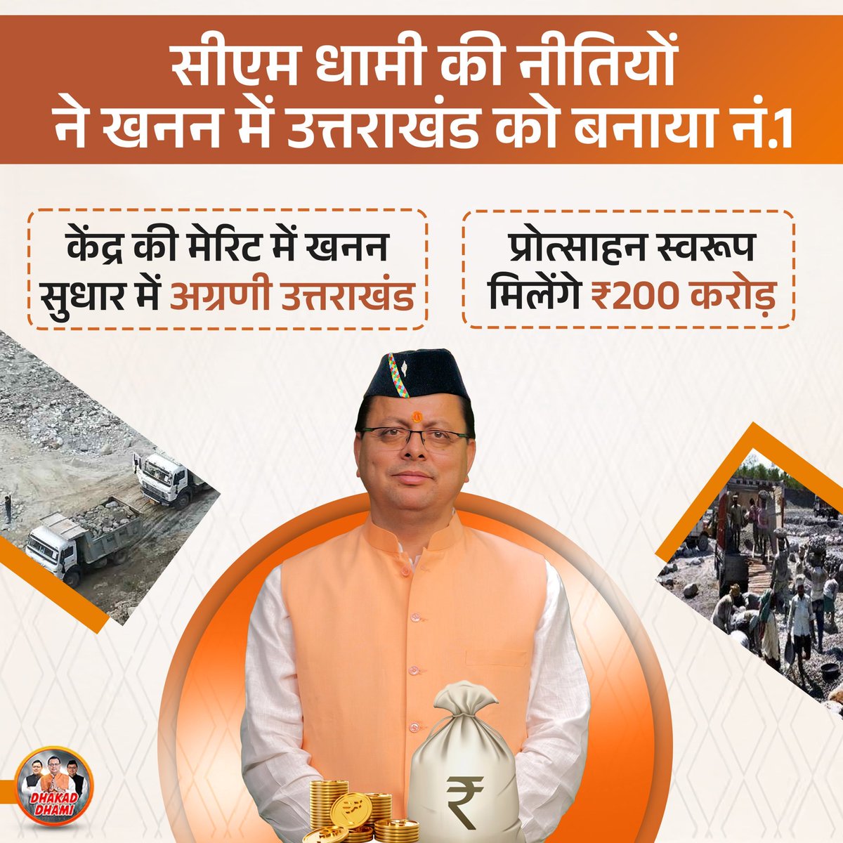 *धामी सरकार की गुड गवर्नेंस नीतियों से उत्तराखंड को लघु खनिज सुधार में देश में दूसरा स्थान*