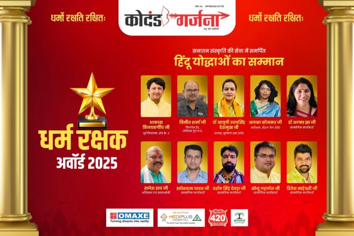इस दिव्य अवसर पर सनातन संस्कृति के लिए समर्पित कई हिंदू योद्धाओं को “धर्म रक्षक अवॉर्ड” से सम्मानित किया जाएगा। ये वे व्यक्तित्व हैं जिन्होंने समाज सेवा, राष्ट्र सेवा, आध्यात्मिक जागरण और सांस्कृतिक संरक्षण में उल्लेखनीय योगदान दिया है।