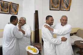 बिहार की राजनीति में बड़ा बदलाव देखने को मिला है. लंबे समय तक बिहार के मुख्यमंत्री नीतीश कुमार अब दिल्ली की ओर चल पड़े हैं तो वहीं उनके बेटे निशांत कुमार आखिरकार सक्रिय राजनीति का हिस्सा हो गए हैं. परिवारवाद से दूर रहने वाले नीतीश कुमार के बेटे निशांत ने जनता दल यूनाइटेड (JDU) जॉइन कर ली है. पार्टी में आधिकारिक रूप से शामिल होने के बाद निशांत कुमार पिता नीतीश से मिलने पहुंचे और उन्हें मिठाई खिलाकर उनका आशीर्वाद लिया. इसकी पहली तस्वीर भी सामने आ रही है.